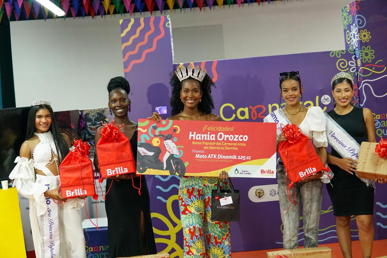 Gases del Caribe y Brilla entregaron una motocicleta a la ganadora del reinado este año, Hania Orozco del barrio La Sierrita, ubicado al suroccidente de la ciudad. Igualmente otorgaron estimulos a varios grupos tradicionales del carnaval de Barranquilla.